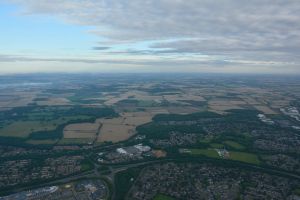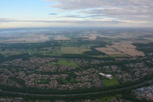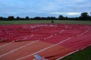 Early August morning (6.30am) balloon flight from Peterborough. Virgin Balloons A400 (400,000 cubic feet and 120ft tall) G-VBAE.