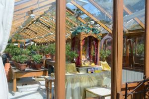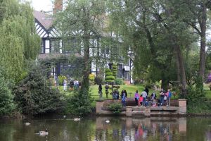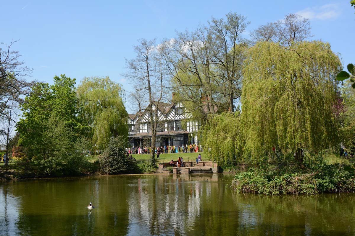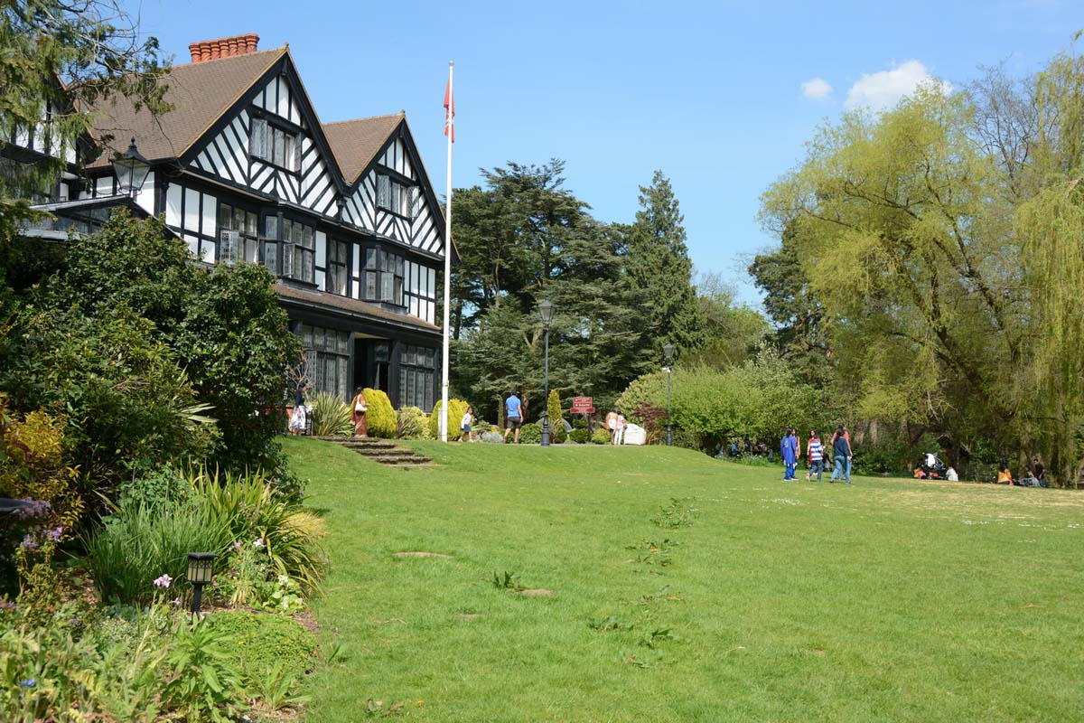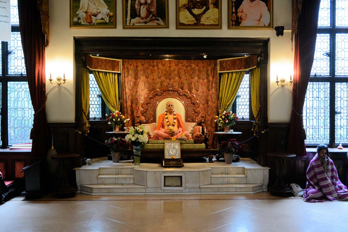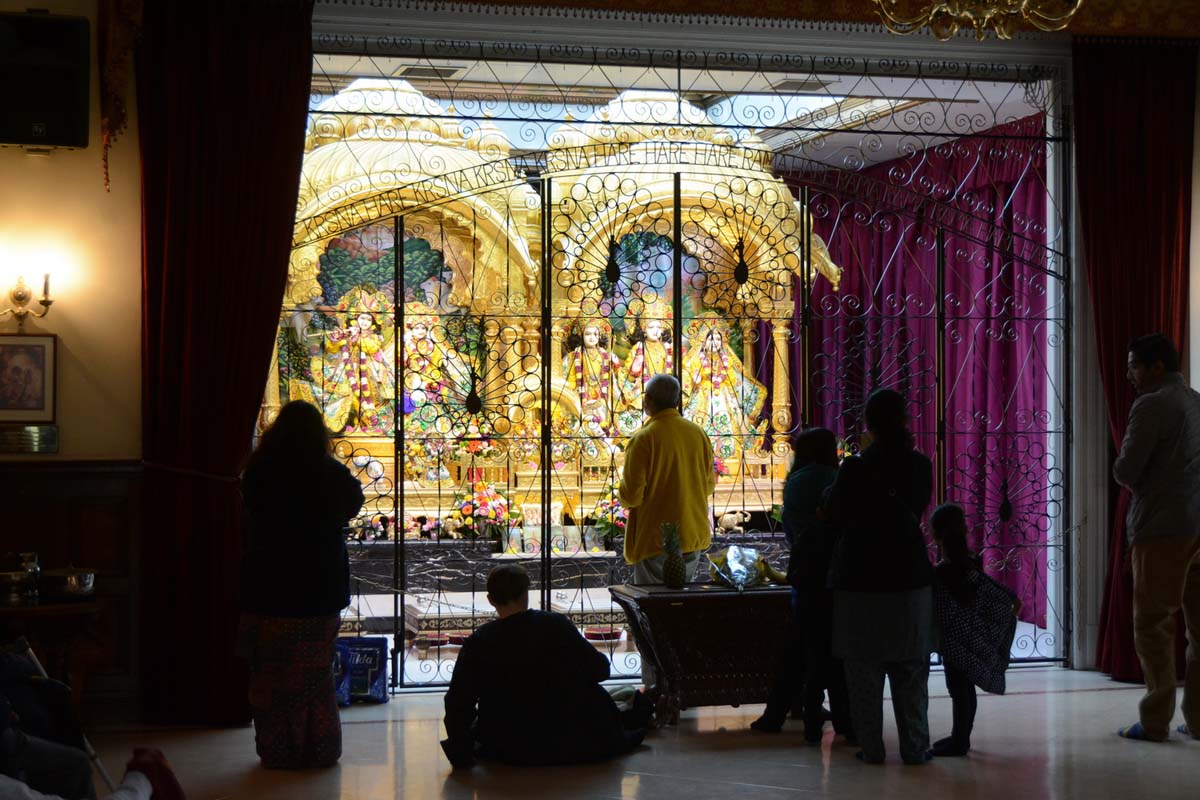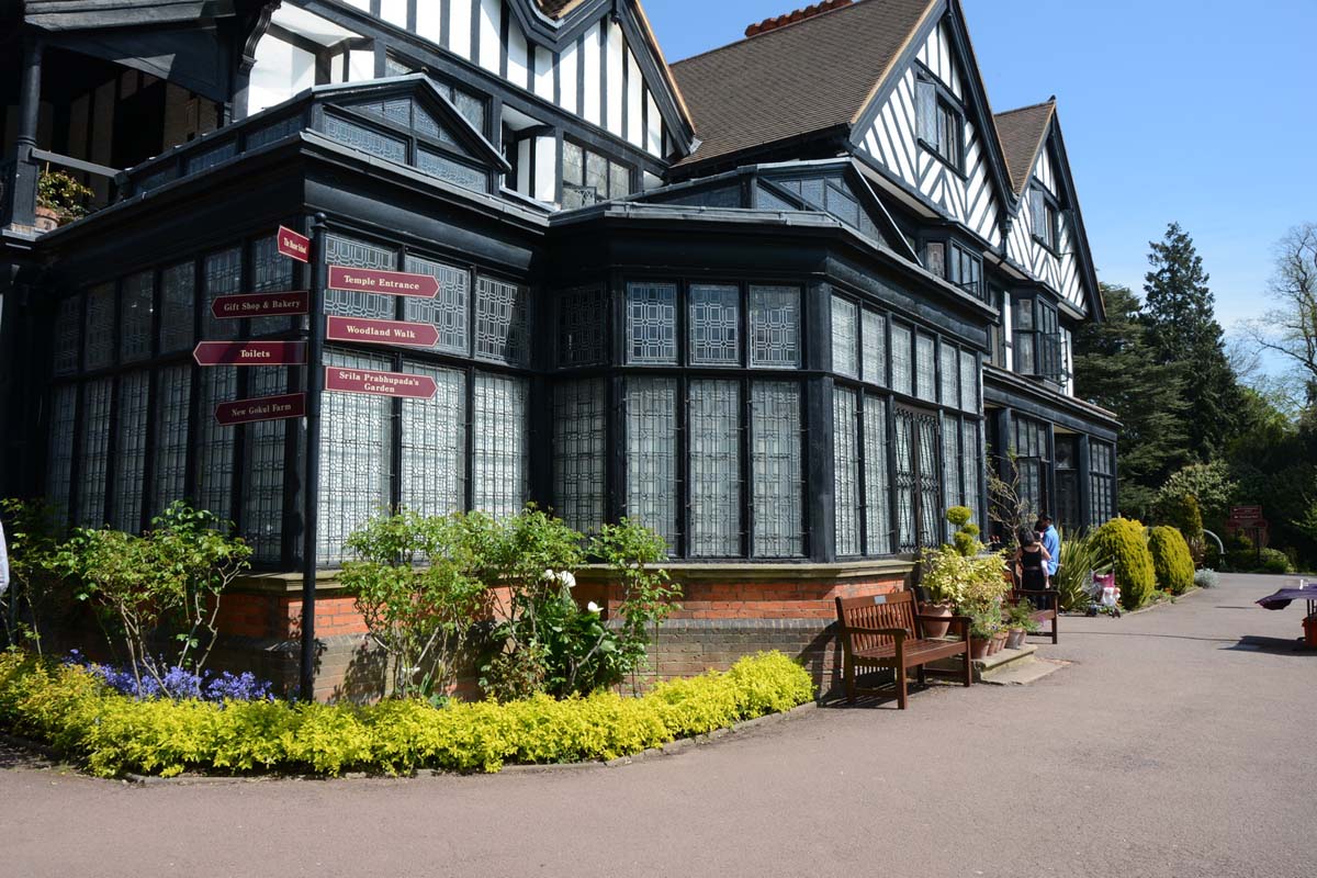The estate of Bhaktivedanta Manor is situated in the Parish of Aldenham in Hertfordshire, just over a mile from Radlett and four miles from Watford. The presence of the estate was first recorded in 1261. In the 16th Century a Tudor house was built on the site but in 1884 George Villies demolished the house and constructed the mock-Tudor building we see today. It was sold, included 17 acres of land to George Harrison of the Beatles who gave it as a gift to the International Society for Krishna Consciousness (ISKCON), better known as the Hare Krishna movement. It now stands in 70 acres of landscaped grounds and is ISKCON's largest property in the United Kingdom, and one of the most frequently visited Radha Krishna temples in Europe. The house is listed Grade II on the National Heritage List for England.