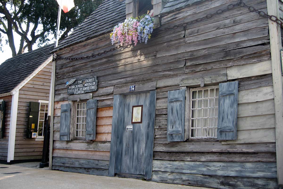 St. Augustine is known for its Spanish colonial architecture. The Oldest Wooden School House is a wooden structure located near the city gate. It is touted as being the oldest wooden school building in the United States.