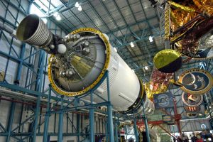 Other large exhibits include the Apollo 14 command module, an unused Apollo Command/Service Module (CSM-119) and an unused Lunar Module (LM-9). Also on display is a slice of Moon rock that visitors can touch.
