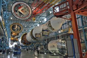 The Apollo & Saturn V Center opened December 17, 1996. The 100,000-square-foot facility was built to house a Saturn V launch vehicle and features other exhibits related to the Apollo program.
