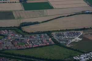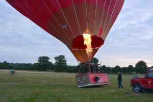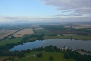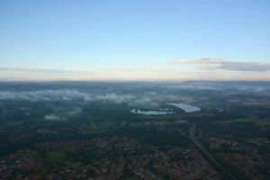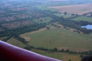 Early August morning (6.30am) balloon flight from Peterborough. Virgin Balloons A400 (400,000 cubic feet and 120ft tall) G-VBAE.