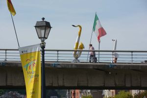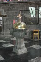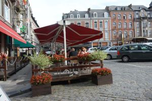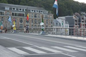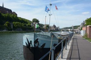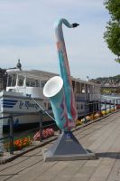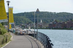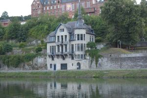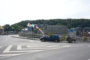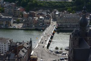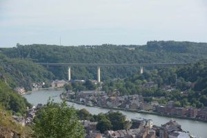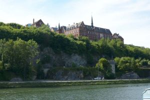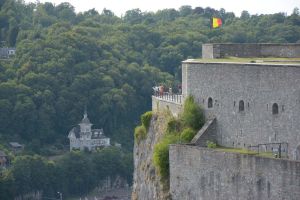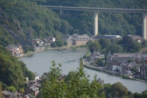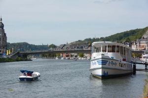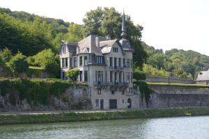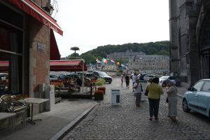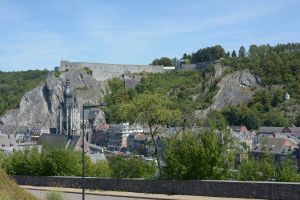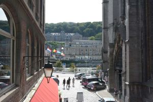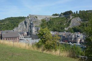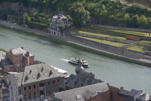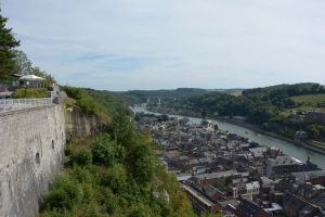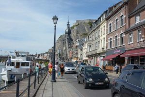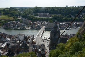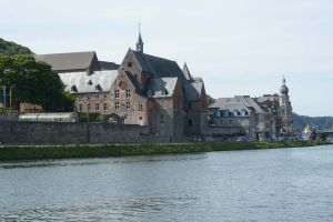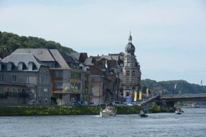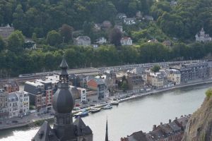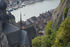 Dinant is a Walloon city and municipality located on the River Meuse, in the Belgian province of Namur. Dinant is positioned in the Upper Meuse valley, at a point where the river cuts deeply into the western Condroz plateau. Sited in a steep sided valley, between the rock face and the river. The original settlement had little space in which to grow away from the river, and it therefore expanded into a long, thin town, on a north-south axis, along the river shore. The city's landmark is the Collegiate Church of Notre Dame de Dinant which has a central tower with a famous onion dome and facetted multi-staged lantern. The house of Adolphe Sax, inventor of the saxophone is located in the street of the same name.