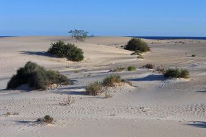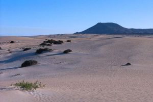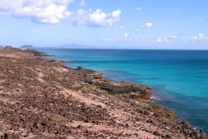 Fuerteventura, the second largest of Spain’s Canary Islands, sits in the Atlantic Ocean 100km off the north coast of Africa. It’s known primarily as a holiday destination due to its white-sand beaches and year-round warmth cooled by constant winds. It was declared a biosphere reserve by UNESCO in May 2009. Its capital is Puerto del Rosario.